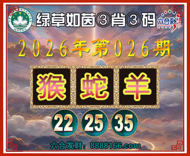 026期:『绿草如茵』 🏅③肖③码🏅【猴蛇羊】【22.25.35】开:猪19