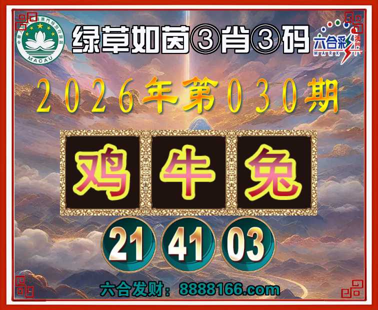 030期:『绿草如茵』 🏅③肖③码🏅【鸡兔】【21.41.03】开:牛41