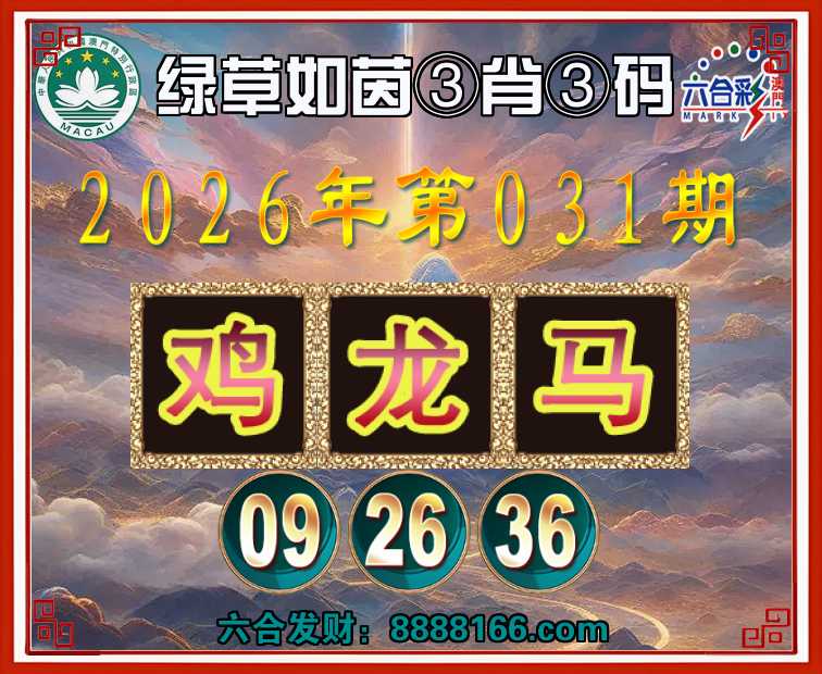 031期:『绿草如茵』 🏅③肖③码🏅【鸡马】【09.26.36】开:龙26